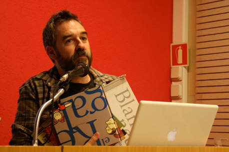 Presentación a cargo de Gabriela Rubio, coordinadora del curso de especialización en ilustración para publicaciones infantiles y juveniles de Eina, y Pep Montserrat, ilustrador en el sector editorial.
