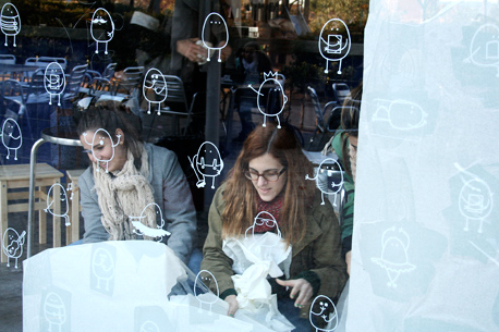 Dentro de la asignatura de Propietats i Usos de Nous Materials, impartida por Anna Llàcer y Lluc Massaguer, el 3º curso de Grado de Diseño, se planteó el proyecto de aplicación de una gráfica en un espacio mediante material adhesivo, con colaboración de la empresa MACtac. Entre las propuestas que surgieron del trabajo de los estudiantes, fue escogida la propuesta que ya se puede ver aplicada en el espacio del bar Aulazero, junto a la sede principal de Eina.
