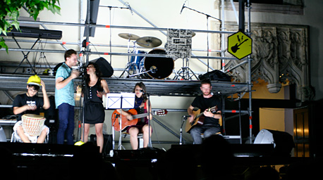 The EINA 2012-13 year end party was held on 28 June. The students on the Stage Design subject, in the 4th year of the Design Degree, taught by Anna Alcubierre took care of preparing the “Fes-te la festa” [DIY Party], a collaborative event that was steadily created, using social networks, in the form of small concerts, photographs of the participating profiles and 400 metres of fabric that marked out different spaces.